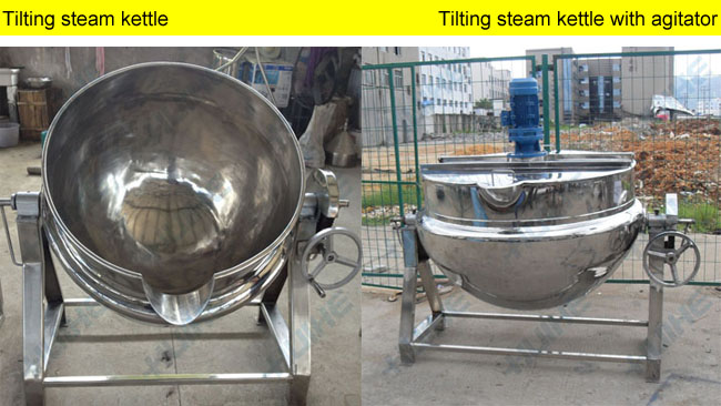 Tilting steam heating jacketed kettle with agitator has been widely applied in food processing such as candy, medicine, dairy, alcohol, cake, beverage, sweetmeat, can, etc. Some large restaurants and canteens also use it to boil soup, cook, stew and porridge. It is considered to be the ideal equipment in the area of improving quality, shortening the time and improving working conditions.
