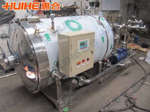 Hot water rotary sterilization vessel is the equipments for canned food to cook, sterilize and cool. It is especially for the high rate of solid food (such as cans, rice pudding, milk peanuts, etc.) and other canned food which is various concentrations and different viscosity. It can ensure not hierarchical and non-precipitation in the shelf time. In addition to the above characteristics, the material of this machine cage clamping device is used internationally advanced pneumatic components; The autoclave has the advantages of reasonable design, compact structure, safe and reliable operation, high efficiency, with a simple installation, easy operation and maintenance, etc.