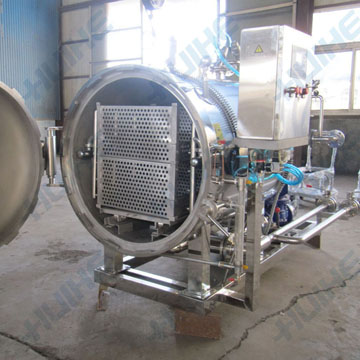 臥式殺菌鍋是屬于靜置式、間歇式殺菌設(shè)備,殺菌鍋原理是以通入飽和蒸汽為加熱介質(zhì)對產(chǎn)品進(jìn)行高溫滅菌,用補(bǔ)充壓縮空氣來實(shí)施反壓操作,再注入冷水(溫水)直接進(jìn)行強(qiáng)制冷卻的殺菌設(shè)備。