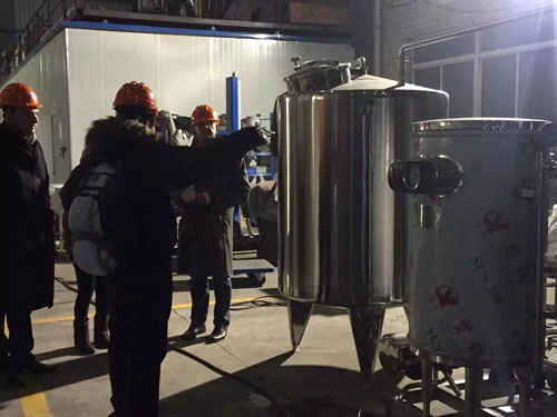 經(jīng)過與外貿(mào)業(yè)務(wù)員的多次溝通與確認(rèn),加拿大客戶于2015年10月在我公司下單一臺(tái)真空乳化機(jī)。目前設(shè)備已接近收尾工作,客戶來我公司驗(yàn)貨,業(yè)務(wù)員與技術(shù)工程師熱情接待并為其講解了真空乳化機(jī)的各組成部件與操作方法,并進(jìn)行了試機(jī)操作,后又帶客戶參觀了我公司的其它食品機(jī)械設(shè)備。